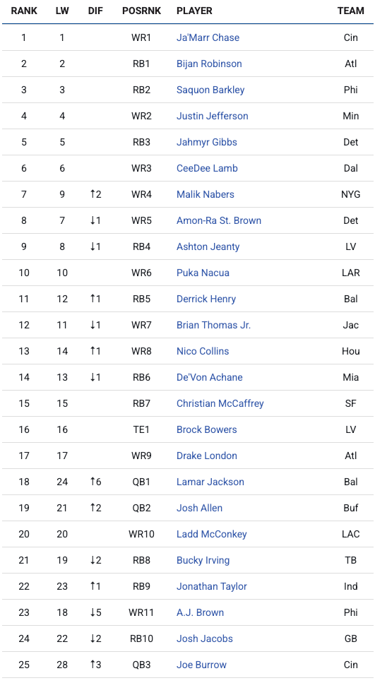Among the biggest movers this week: Lamar Jackson surged 6 spots, Jayden Daniels climbed 4, and Bo Nix jumped 8. But which of these rising QBs most deserves the boost?